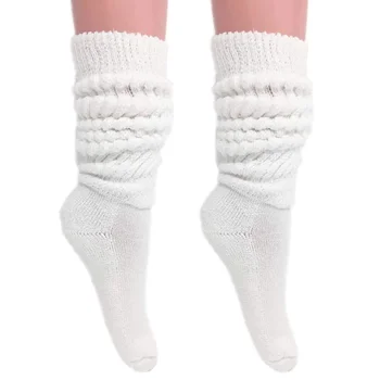 Women's Athletic Scrunch Comfort White Over Knee Autumn Thick Fitted Foot Long Slouch Socks