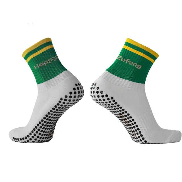 HAPPYZUFENG Youth Custom Midi Crew GAA Grip Sport Football Socks Green White Compression Anti-Slip Sweat Bottom Cuff Striped